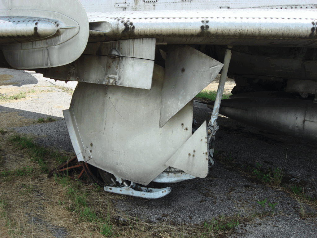 Landing gear with a nose wheel. Hydraulically retracted and extended. The front leg is equipped with a vibration damper, which also acts as a steering (steering) system for the wheel. All wheels are single. Oil-pneumatic shock absorbers. The front landing gear retracts towards the front and is covered by two symmetrical flaps. The main one towards the fuselage, mainly to the wings, and only partially to the fuselage. The tires have a relatively large diameter for the possibility of using ground airports and are high-pressure. The main landing gear spacing is 3.83 m.